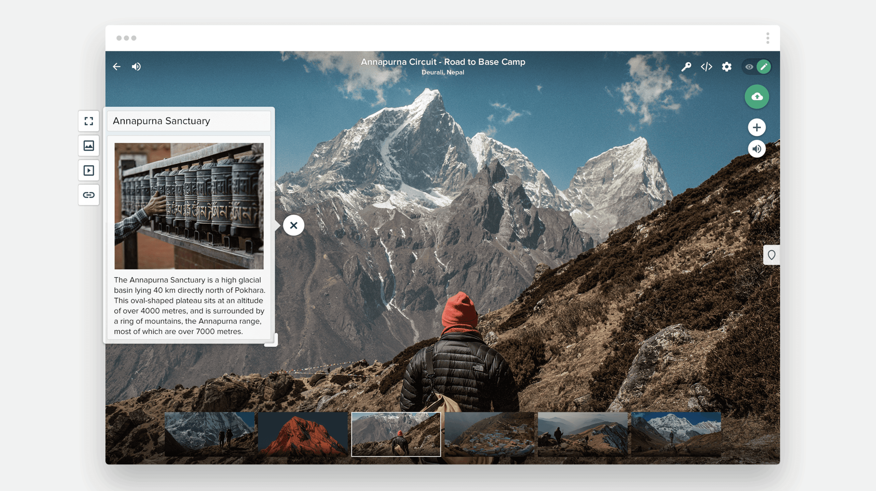 Portals, Hotspots, Maps, Welcome Screens, Sounds... Everything to produce elegant, aesthetically pleasing and exceptionally beautiful 360° stories.