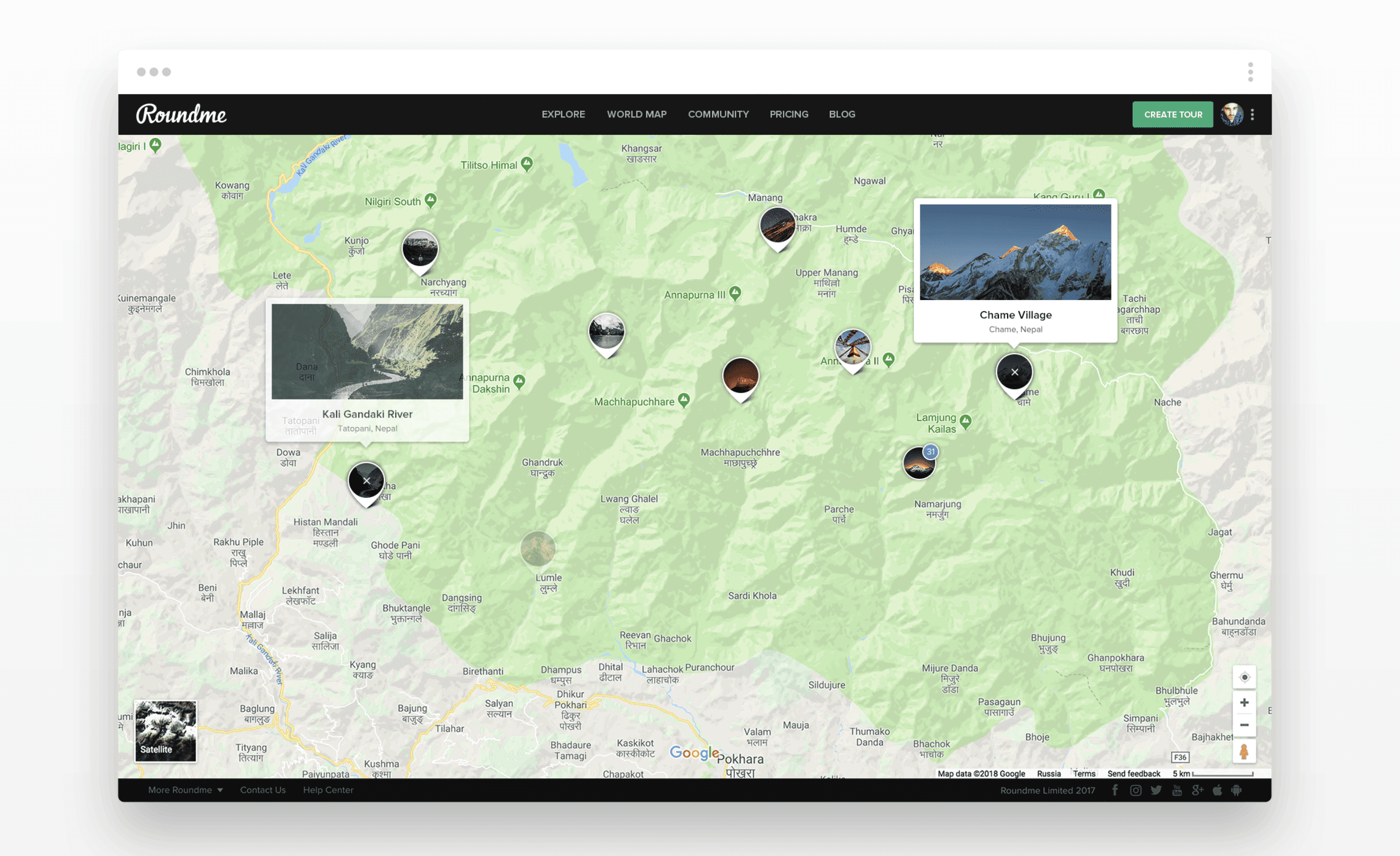 Easily upload multiple 360° panoramas with single drag & drop. Roundme supports JPEG and TIFF images up to 65,000 pixels. Images are safely and securely stored in the cloud and available for download anytime.