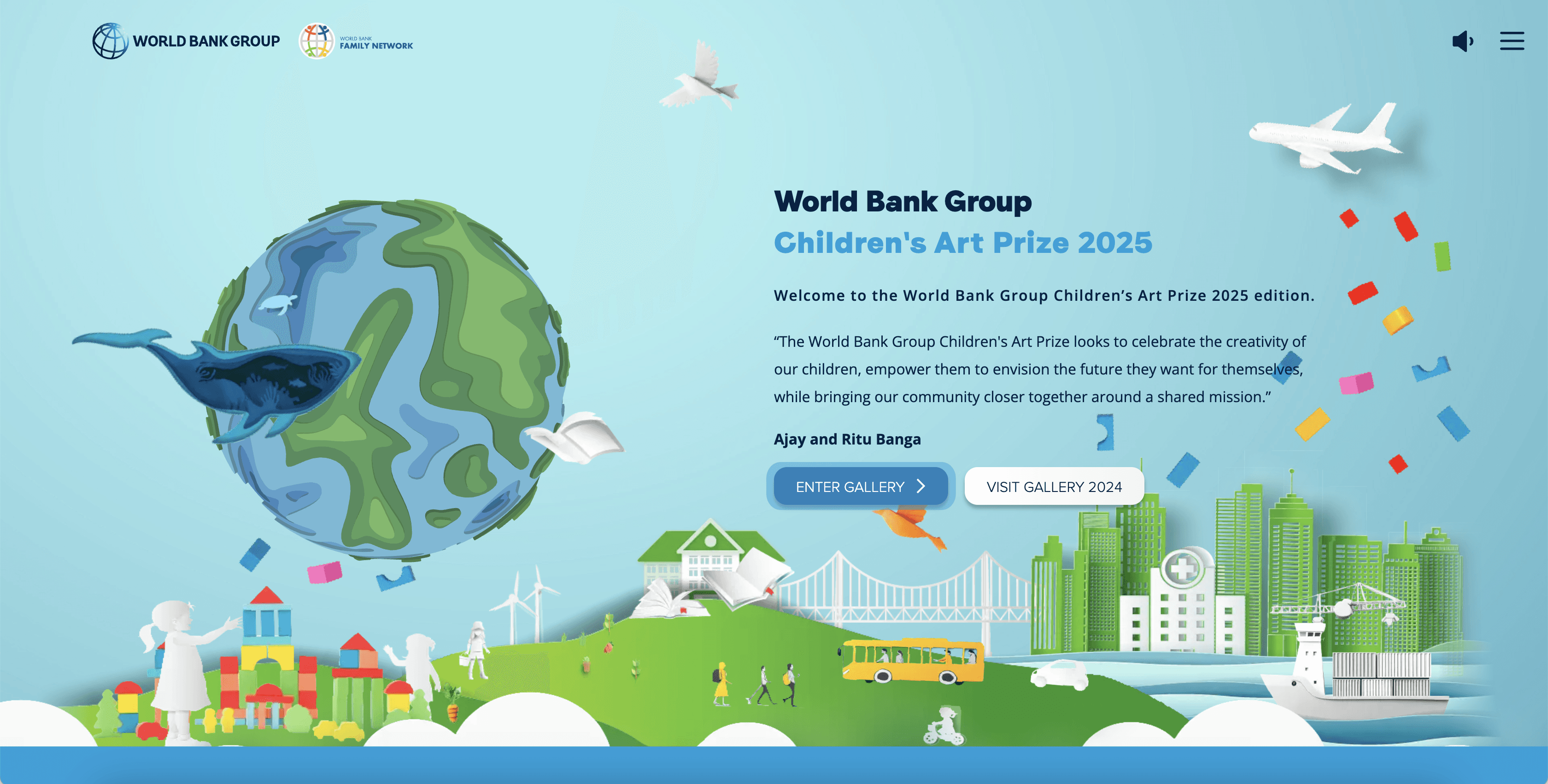 The work earned recognition at the highest levels. I had the honor of meeting World Bank President Ajay Banga and his wife during the Children's Art Prize celebration - a project we developed with the GCSIM team that used immersive technology to showcase children's artwork from around the world.