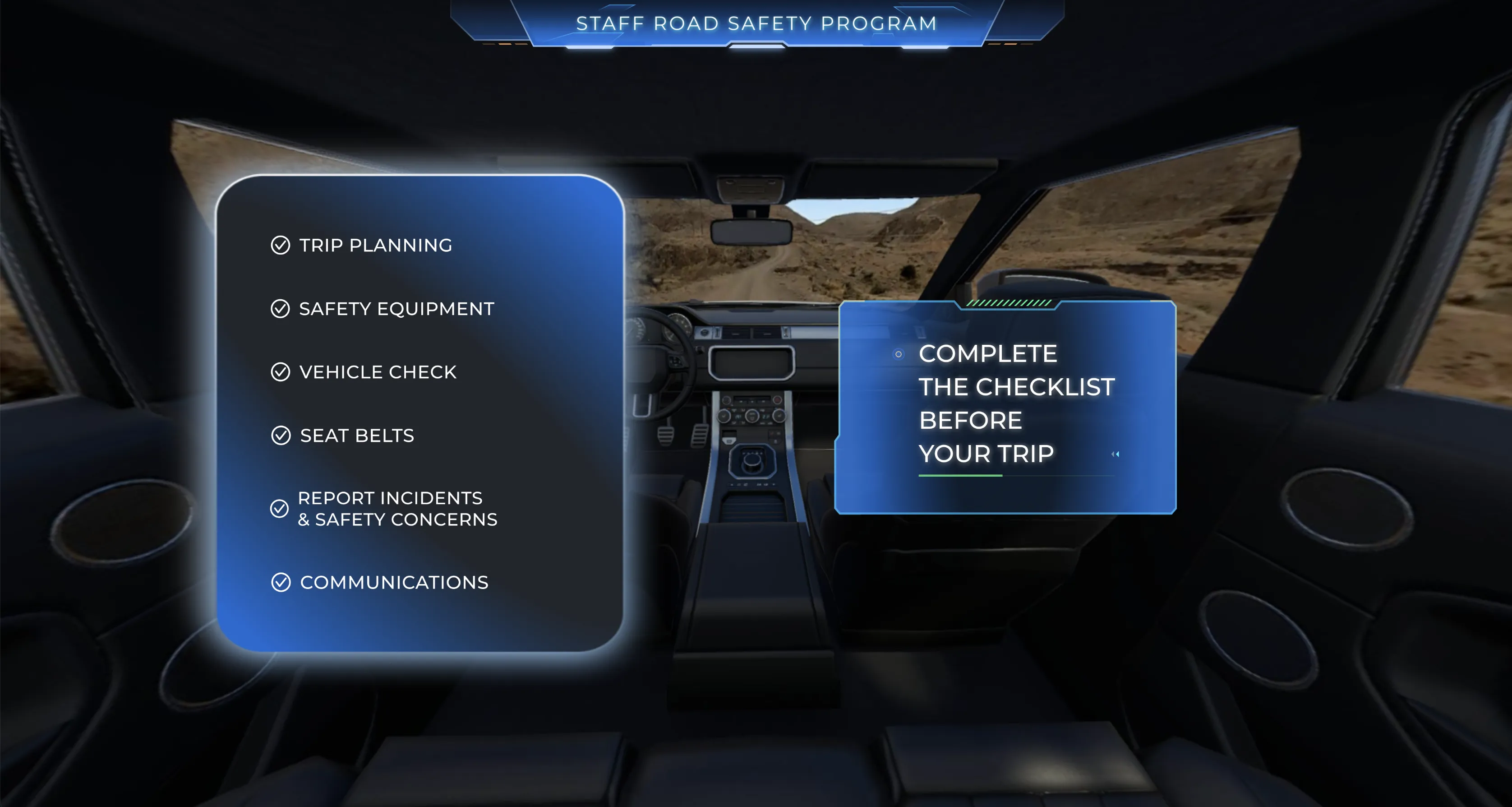 VR proved especially valuable for training scenarios that are difficult, dangerous, or expensive to replicate in real life. The Staff Road Safety Program uses immersive simulation to prepare employees for field travel in challenging environments.