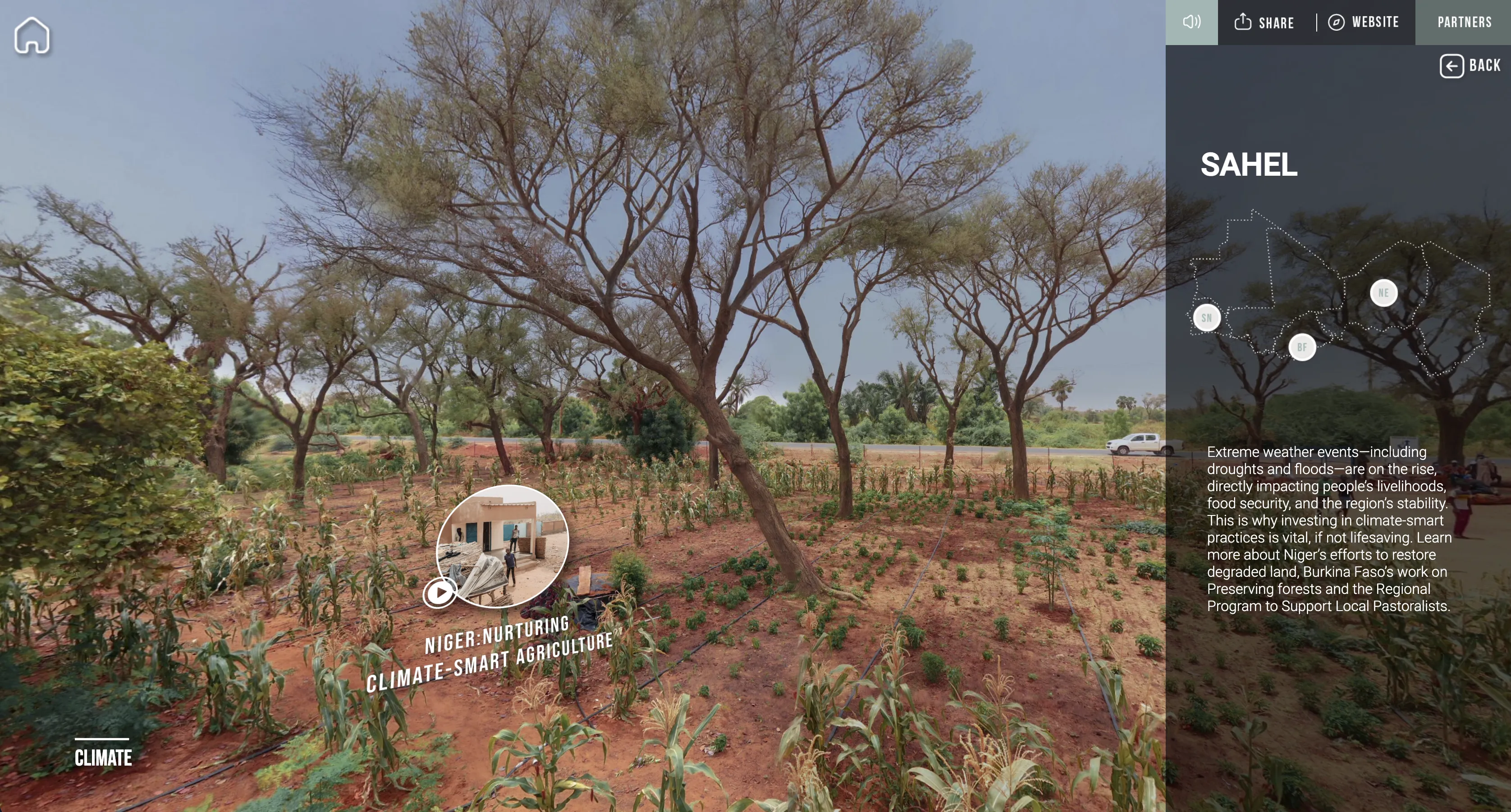The Sahel Virtual Journey takes viewers into one of the world's most climate-vulnerable regions, showing how communities adapt to extreme weather through climate-smart agriculture practices.
